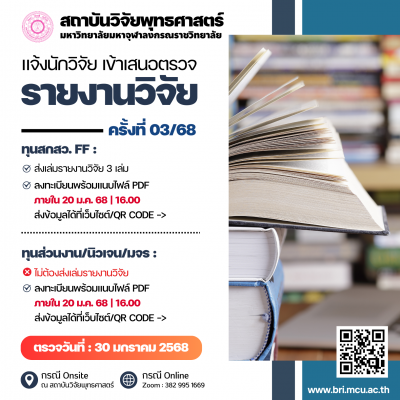 ค้นหา Reset แจ้งนักวิจัยเข้าเสนอตรวจรายงานวิจัย ครั้งที่ 03/68 สถาบันวิจัยพุทธศาสตร์ดำเนินการตรวจประเมินรายงานการวิจัย ครั้งที่ 2/68 (เฉพาะทุนส่วนงาน) ปีงบ 2568 (ก่อนทำสัญญาวิจัย) สถาบันวิจัยพุทธศาสตร์ดำเนินการประชุมตรวจข้อเสนอโครงการวิจัยการขับเคลื่อนมหาวิทยาลัยกลุ่มพัฒนาปัญญาและคุณธรรมด้วยหลักศาสนาปีงบ 2568 ขอเชิญอาจารย์ นักวิจัย และเจ้าหน้าที่เข้าร่วมโครงการโครงการพัฒนาศักยภาพบุคลากรด้านการวิจัย BRI Upskill หัวข้อ: KM เขียนอย่างไร พิชิตทุนวิจัย Strategic Fund: SF ครั้งที่ 1 แจ้งนักวิจัย เข้าเสนอตรวจรายงานวิจัย ทุนส่วนงาน ปีงบ 2568 ขอแสดงความยินดีกับ ดร.สร้อยบุญ ทรายทอง ในโอกาสที่ได้รับการพิจารณาทุนการวิจัย ประเภททุนสนับสนุนงานเชิงกลยุทธ์ – Strategic Fund : SF ปีงบประมาณ 2568 ขอแสดงความยินดีกับ ดร.ลำพอง กลมกูล ในโอกาสที่ได้รับการพิจารณาทุนการวิจัย ประเภททุนสนับสนุนงานเชิงกลยุทธ์ – Strategic Fund : SF ปีงบประมาณ 2568 ← Prev 1 … 13 14 15 16 17 18 … 115 Next →