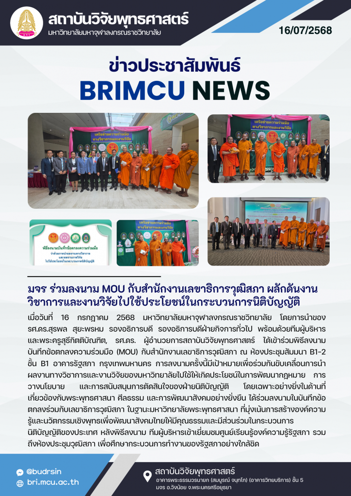 มจร ร่วมลงนาม MOU กับสำนักงานเลขาธิการวุฒิสภา ผลักดันงานวิชาการและงานวิจัยไปใช้ประโยชน์ในกระบวนการนิติบัญญัติ ข่าวสารประชาสัมพันธ์ มจร ร่วมลงนาม MOU กับสำนักงานเลขาธิการวุฒิสภา ผลักดันงานวิชาการและงานวิจัยไปใช้ประโยชน์ในกระบวนการนิติบัญญัติ Read More »